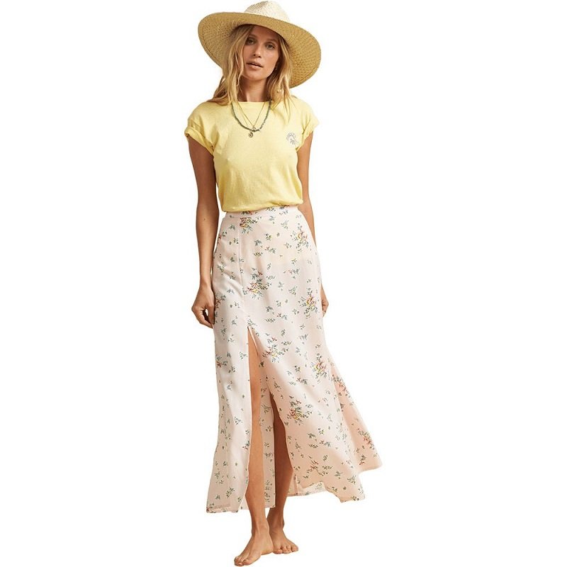 La vita è meravigliosa con questo tessuto ecosostenibile certificato, impreziosito da morbidi fiori estivi. Il tessuto drappeggiato e i due spacchi davanti donano eleganza a questa maxi gonna. Coordinata con la camiciola Northern Lights per i tuoi eventi sociali estivi.