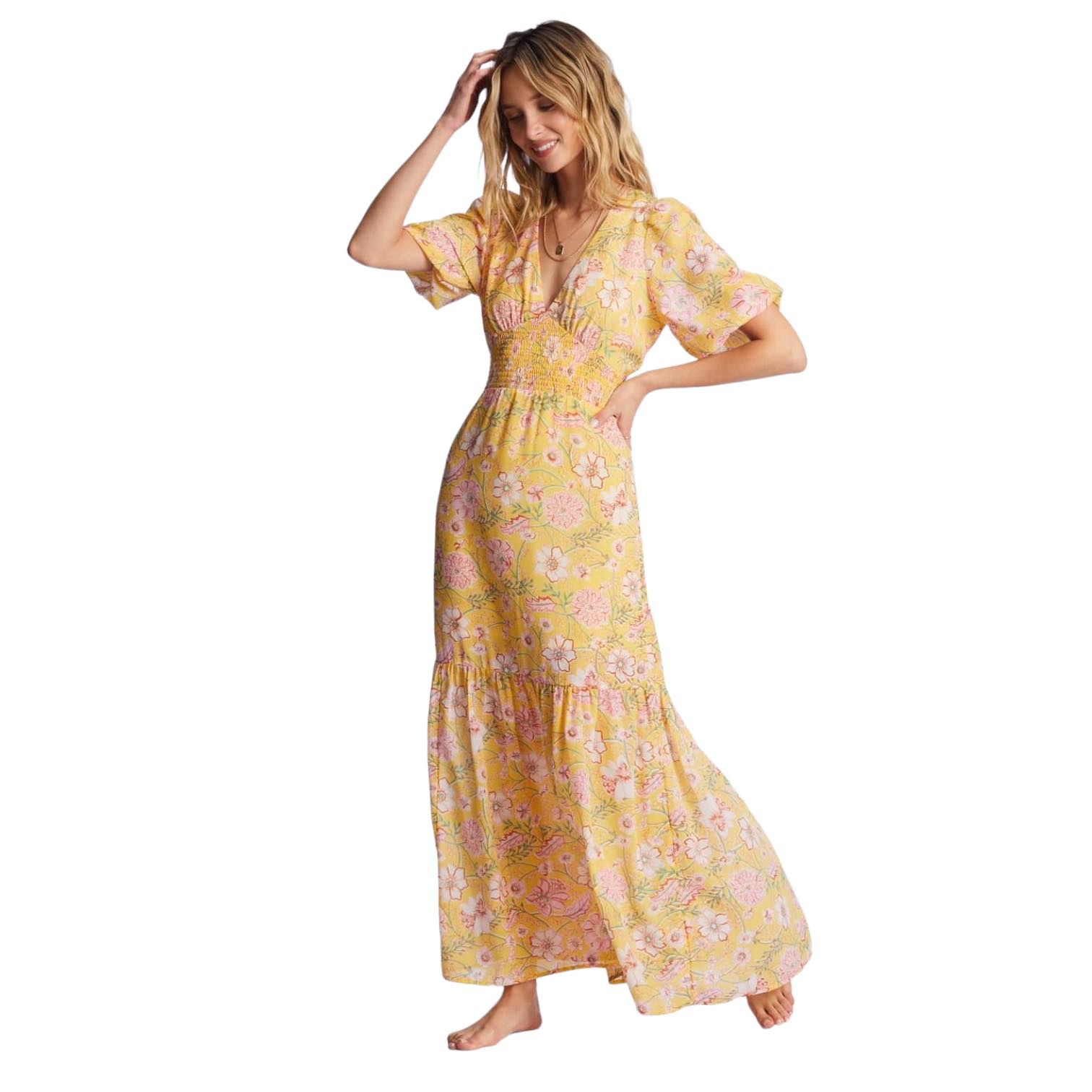 - Altre caratteristiche: punto smock in vita e orlo della gonna a balze