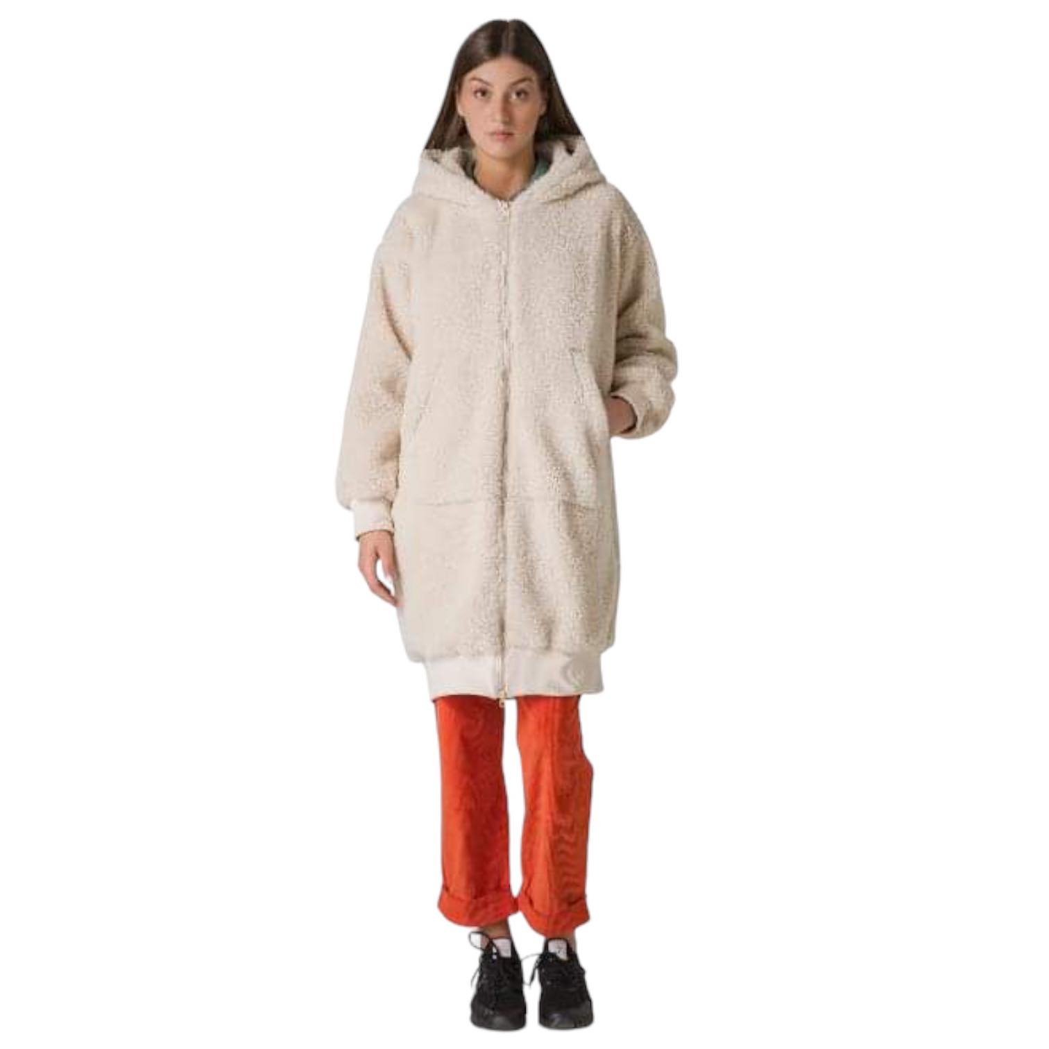 - fodera interna, cappuccio con coulisse, zip doppio cursore,tasca a marsupio,polsi e fondo in costina