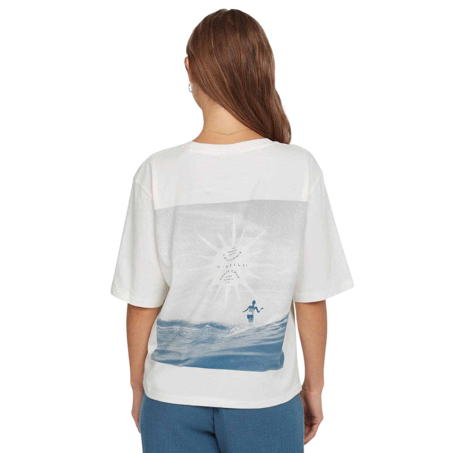 Una lunghezza corta e una vestibilità ampia completano le stampe fredde a base d’acqua sul petto e sulla schiena, insieme a una spalla scesa e un colletto a coste per un comfort spazioso quando sei lontano dalle onde.