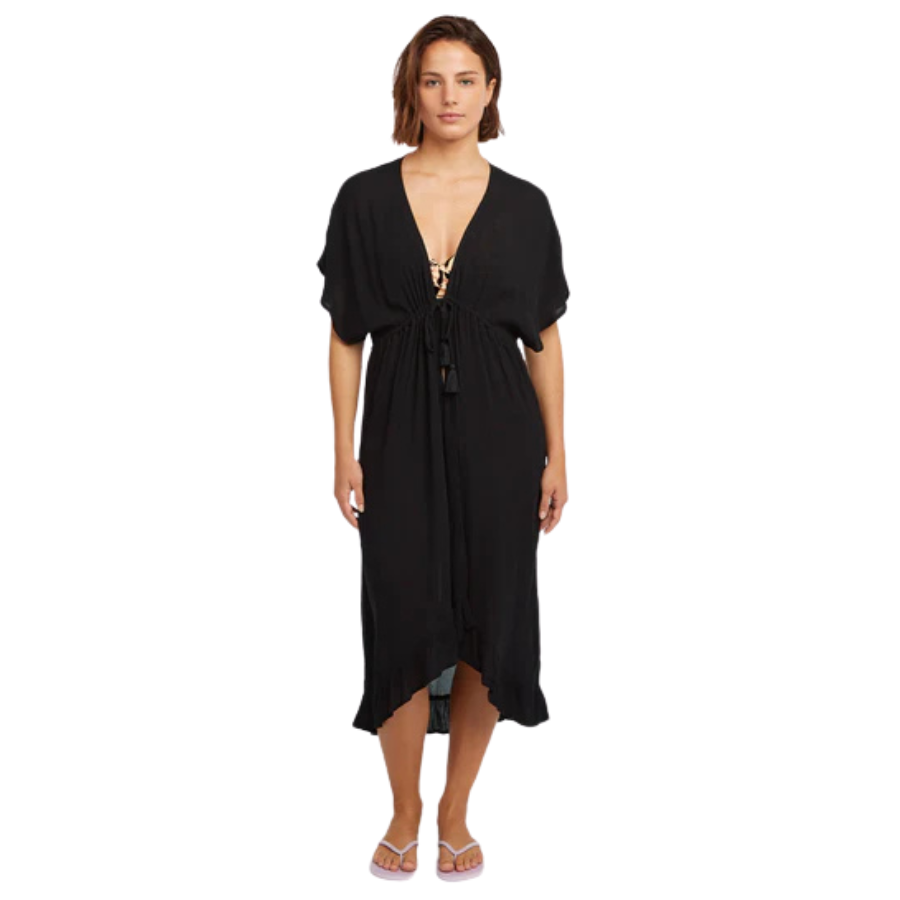 Il Wilder Cover Up è il compagno inseparabile per i tuoi momenti post-surf o per le lunghe giornate in spiaggia. Con il suo taglio loose-fit e il tessuto leggerissimo, è l’abito che infili in un attimo senza rinunciare a un tocco di eleganza boho. I cordini con nappine e la vita elasticizzata definiscono la silhouette con naturalezza. Realizzato in 100% viscosa Livaeco™, scivola sulla pelle come una carezza, offrendo un drappeggio fluido che cattura ogni brezza marina.