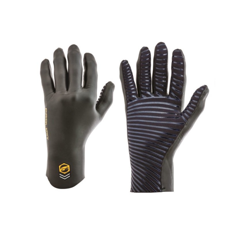 Pelle / rete in neoprene da 2 mm con fettuccia interna per evitare l’ingresso di acqua, costruzione incollata e cucita cieca. Palmo interno con doppia linea in neoprene contro l’usura.