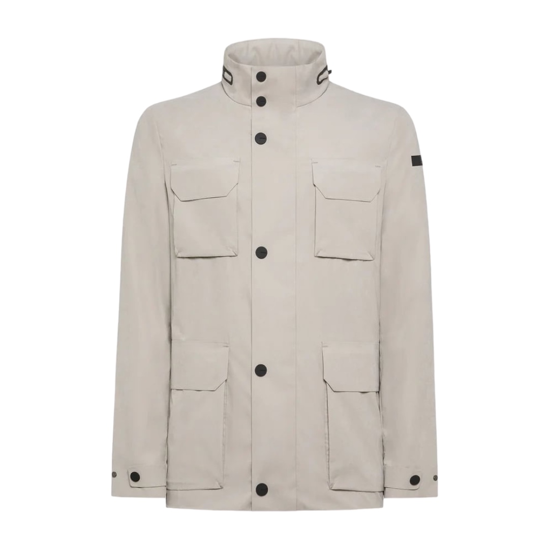 Dietro l’impeccabile taglio vintage, dal fit regolare, questa versione della field jacket da esploratore rivela una costruzione raffinata e gusto per la tecnologia. L’esterno del tessuto a membrana impermeabile e traspirante presenta un touch morbidissimo. Il davanti è caratterizzato dalle quattro tasche a soffietto applicate e chiuse da ampie pattine. La classica chiusura centrale a bottoni a pressione soft touch nasconde la zip termonastrata a doppio cursore. Attraverso un seconda zip nastrata può essere estratto il cappuccio di servizio dal colletto verticale. Il doppio filetto arancione nasconde la zip del taschino interno, impreziosito dall’iconica tag nera a cuore “Made with love, designed in Tuscany”. Logo a microiniezione nero sulla manica sinistra. La grande versatilità confermano questa giacca multitasche un must-have del guardaroba maschile, indispensabile in viaggio.