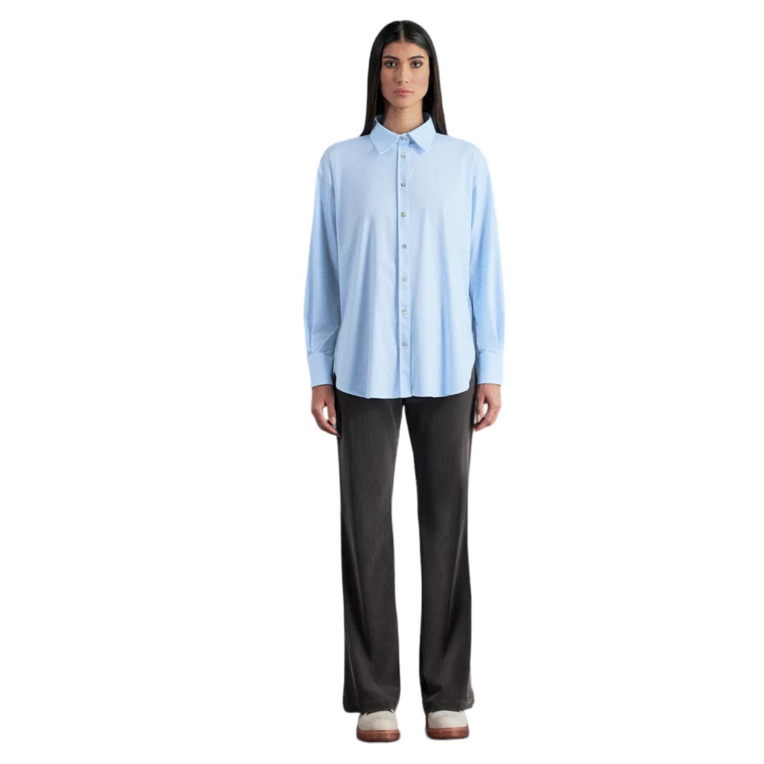Dall’anima rilassata e dal fit morbido, questa camicia a maniche lunghe è un capo essential e classico, ma con un twist di modernità. Il taglio di ispirazione maschile presenta un carré posteriore con due pince, che dona a questo capo un’eccellente vestibilità. La freschezza e la morbidezza del tessuto jacquard Oxford e-quickdry dona una piacevole sensazione di comfort. Il colletto regolare, l’abbottonatura madreperla, gli alti polsini con abbottonatura nascosta e l’iconica tag a cuore sull’interno completano il look con un tocco di stile. NOTA Generale: tutte le camicie da donna hanno il carrè sulla schiena al cui interno vi è il Transfer CUORE.
