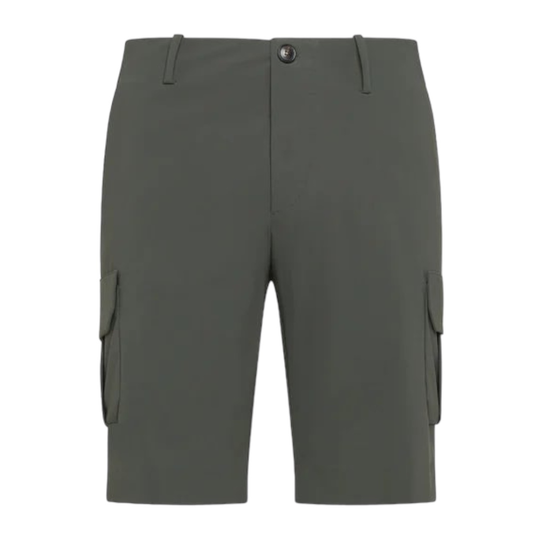 Tutta la leggerezza, il comfort e l’effetto super opaco dell’esclusivo tessuto elasticizzato SURFLEX® in un modello cargo dalla costruzione moderna, protagonista annunciato della bella stagione. La vita a passanti è ravvivata dalle impunture a vista delle tasche laterali alla francese. La preziosa abbottonatura in corno sul davanti è celata dalla pattina. Le tasche posteriori a filetto sono impreziosite dall’iconico logo a microiniezione nero sul lato destro, mentre le caratteristiche tasche a soffietto sulle gambe aggiungono praticità e versatilità. Il tessuto fresco, traspirante ed easy care è valorizzato dall’ampia palette di colori sobri e ricercati, adatti a un paio di bermuda dinamici e instancabili.