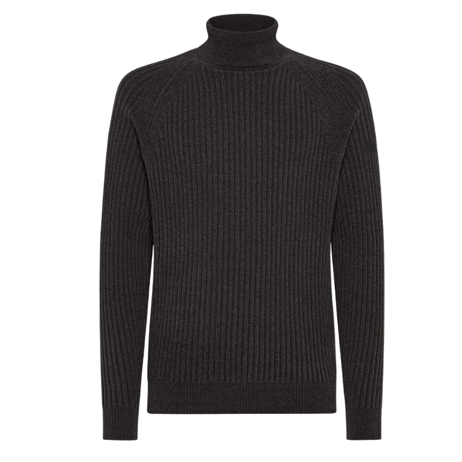 La maglia è realizzata in un pregiato tessuto stretch lavorato ad ampie coste inglesi, che coniuga leggerezza, calore e una morbidezza al tatto straordinari.