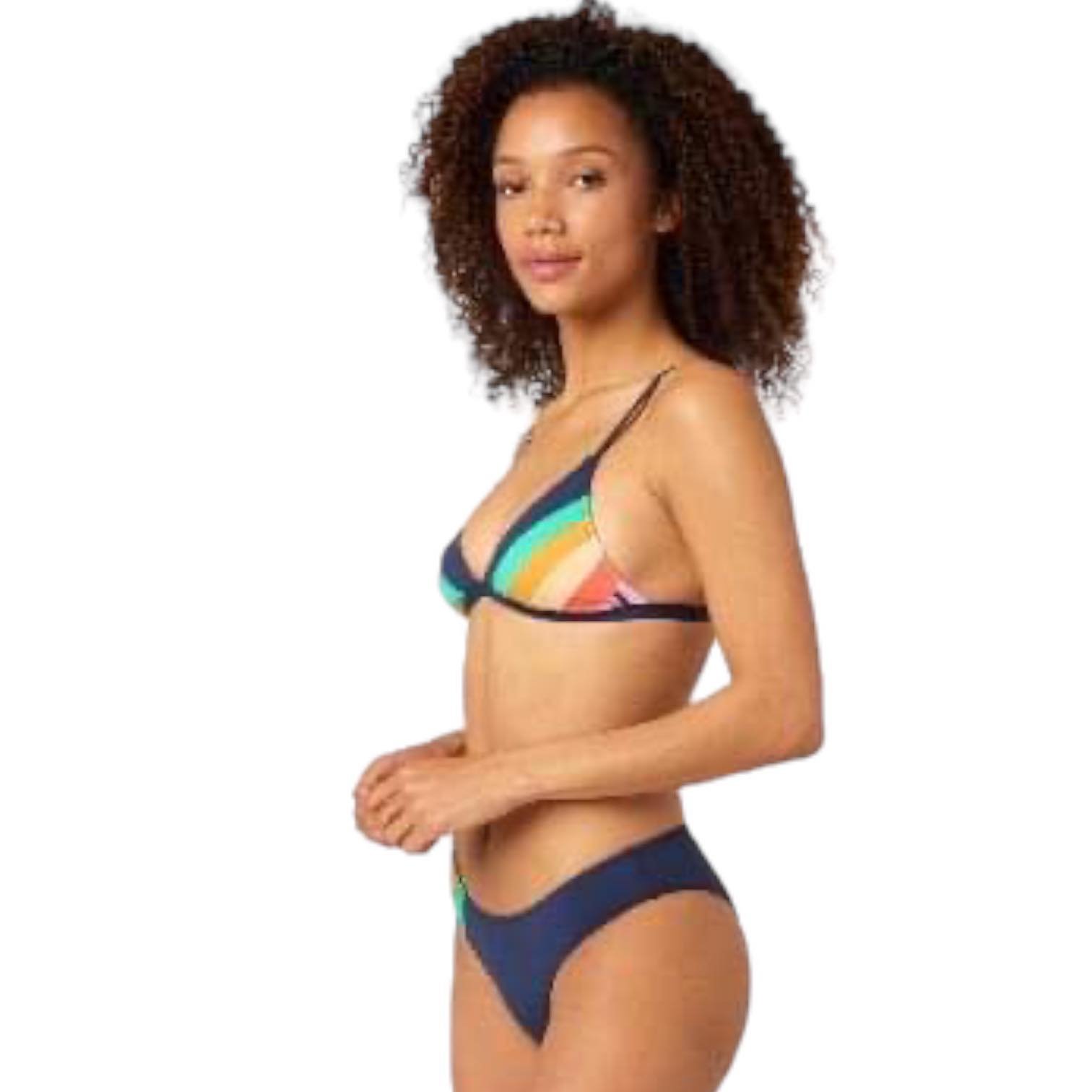 Il set Day Break Tri è un costume due pezzi dal look sportivo e sexy. Questo bikini by Rip Curl ha un tocco anni ’80 grazie alle strisce arancioni e verdi su sfondo blu navy. Ci piace la semplicità del taglio, rilassato ed efficace.