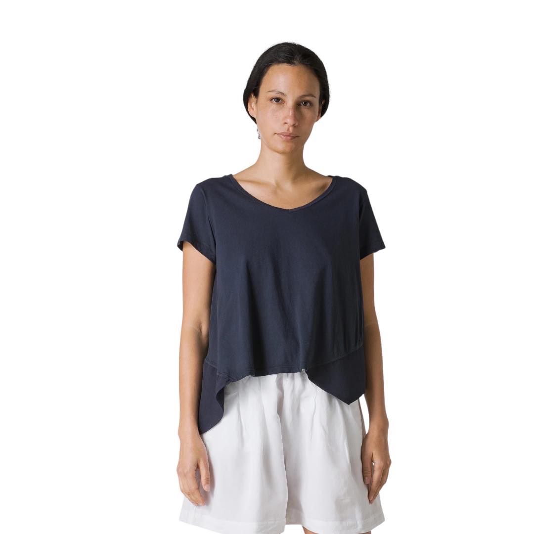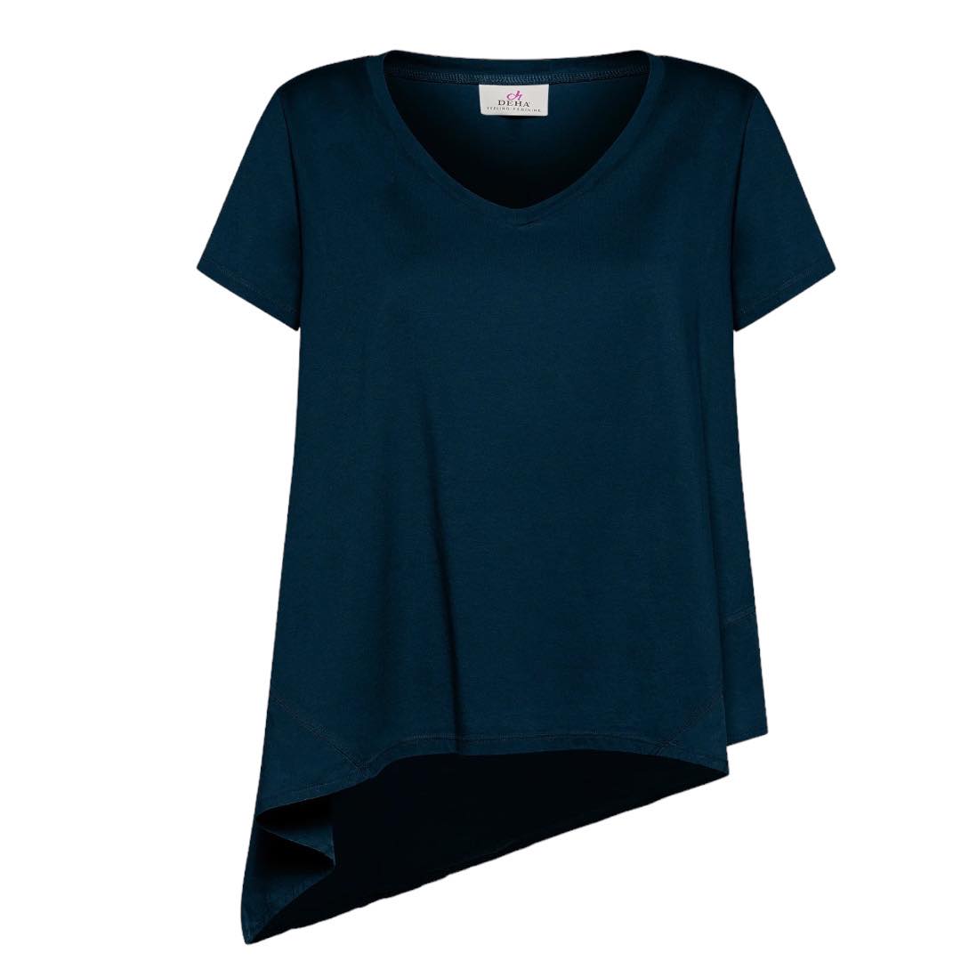 T-SHIRT ASSIMETRICA CON INSERTI IN LINO BLU